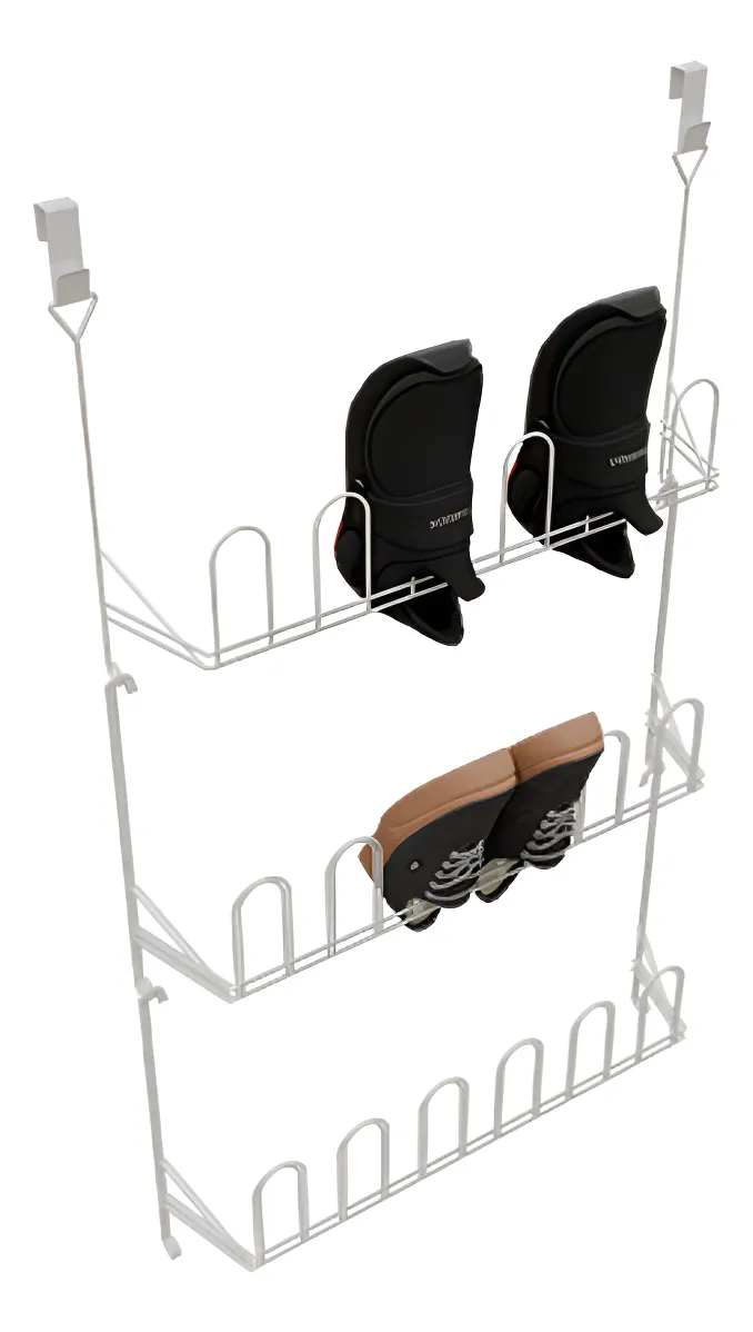 Es ideal para almacenar zapatos y otros artículos de poco peso en el vestier, clóset, cuarto útil. Fácil de armar e instalar sin necesidad de herramientas. Se cuelga sobre las puertas.